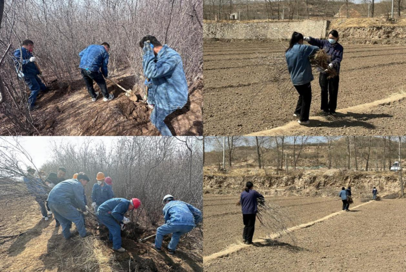 在大家的共同努力下,千余棵桃樹和紫丁香被連根“請”出,它們隊列整齊地矗立在綠化指定區(qū)域??粗矍耙言苑N完畢的小樹苗,黨員代表張濤同志感慨地說到:今天的黨日、團日活動不僅讓我們有幸參與到“愛企、護企”行動之中,用自己的雙手為物產(chǎn)北川工業(yè)物流園區(qū)域內(nèi)景觀增添了一片綠色、再造一處景觀。